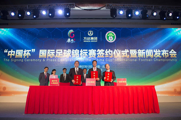 7月13日,經(jīng)中國(guó)足協(xié)、亞足聯(lián)、國(guó)際足聯(lián)批準(zhǔn),由中國(guó)足球協(xié)會(huì)、萬(wàn)達(dá)體育公司主辦,廣西壯族自治區(qū)體育局、南寧市人民政府承辦的首屆“‘中國(guó)杯’國(guó)際足球錦標(biāo)賽”(簡(jiǎn)稱(chēng)“中國(guó)杯”),將于2017年1月9日-16日在廣西南寧市舉辦。來(lái)自歐洲、美洲的三支一流國(guó)家隊(duì)將與中國(guó)國(guó)家隊(duì)舉行4場(chǎng)比賽,為球迷獻(xiàn)上一場(chǎng)高水準(zhǔn)的國(guó)際足球盛宴。