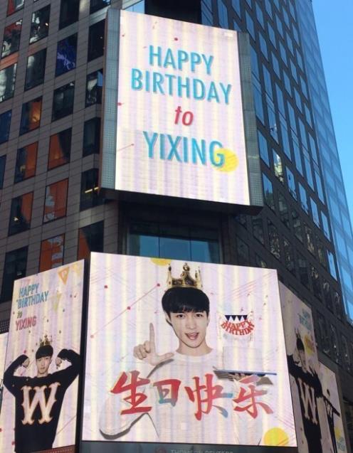 昨日,張藝興的歌迷為了慶祝其生日,租用紐約時(shí)代廣場(chǎng)LED廣告顯示屏,展示“HAPPY BIRTHDAY to YIXING”,并同時(shí)宣傳將要公開(kāi)的solo曲。
